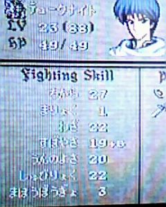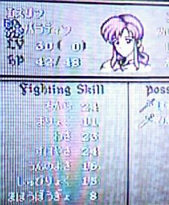 つか、なんでフォレストナイトの力最大値が23なんだ。前線で使うにはちょっと微妙な数値だろう。クラスチェンジ前の最大値と1しか変わらないじゃないか。だからデルムッドも使いにくいんだよ妹より力がないとかいう事になるんだよ。(一周目では途中までパワーリング持たせて使ってたけど)